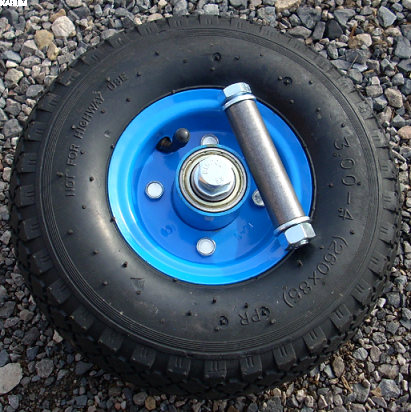 Koło pneumatyczne fi 260mm,felga metalowa,łożysko kulkowe 6004ZZ,dodatkowo oś w zestawie(śruba M12x100,tuleja 20×3,75x80mm,nakrętka M12,dwie podkładki fi20).