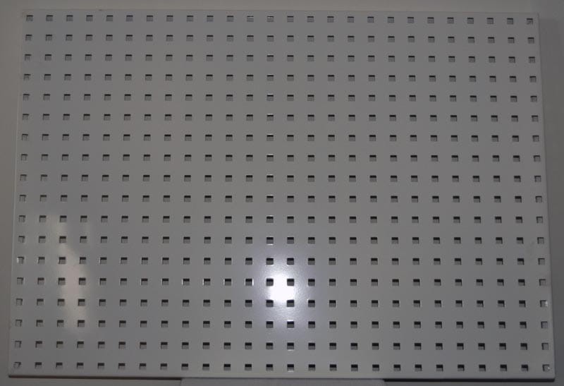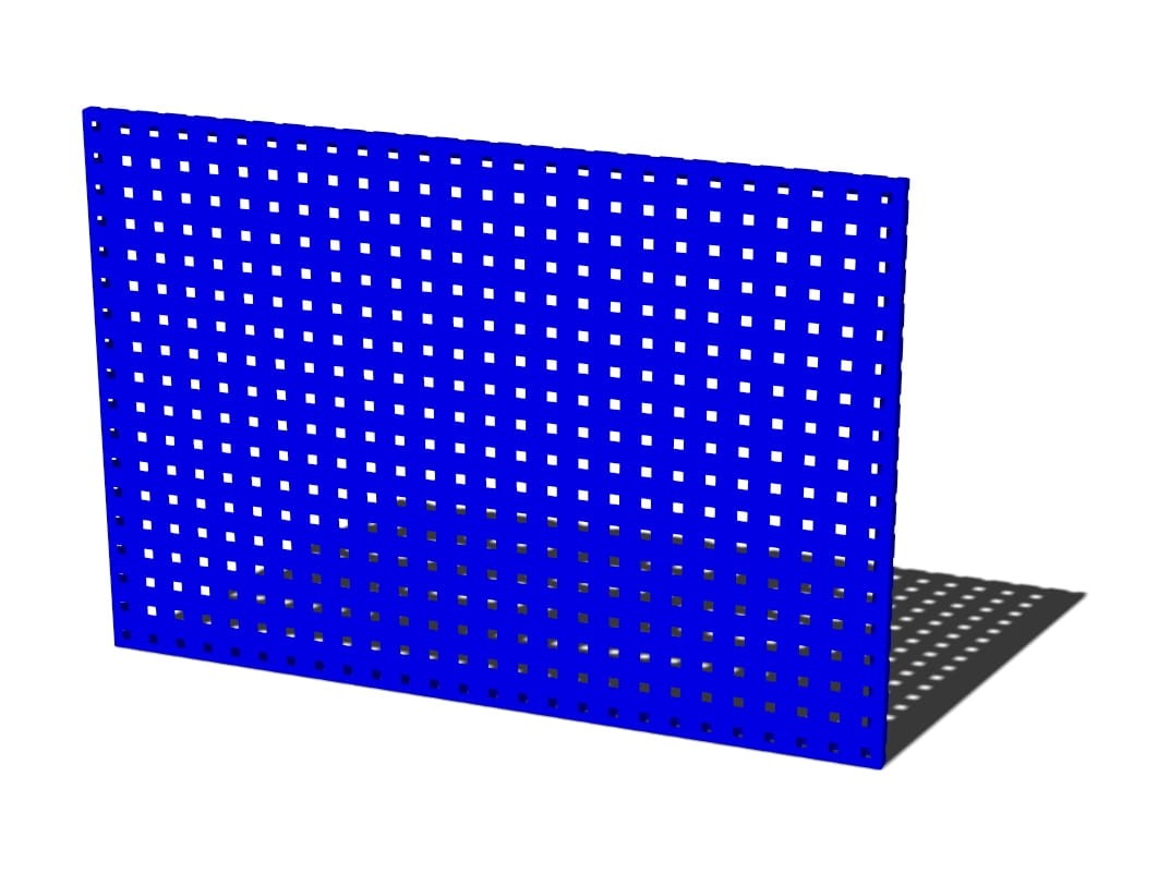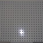Płyta perforowana duża o wymiarach 830x576mm, perforacja ma rozstaw otworów 32x32mm, otwory perforacji 10x10mm, grubość blachy 1mm.