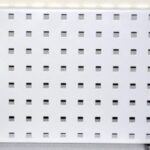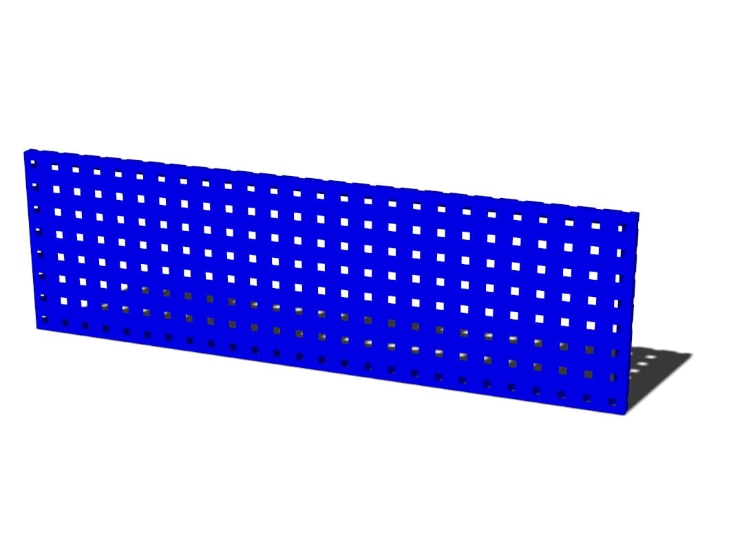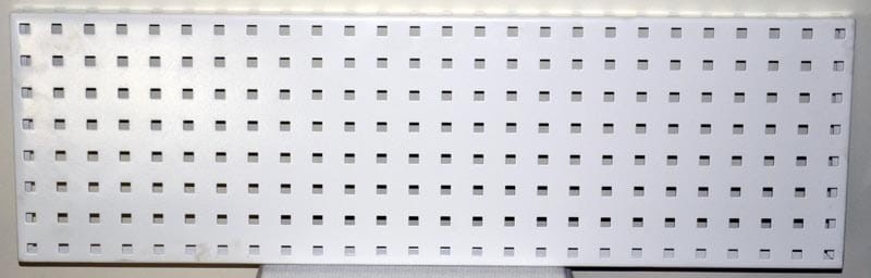 Płyta perforowana mała o wymiarach 830x256mm,perforacja ma rozstaw otworów 32x32mm,otwory perforacji 10x10mm,grubość blachy 1mm.